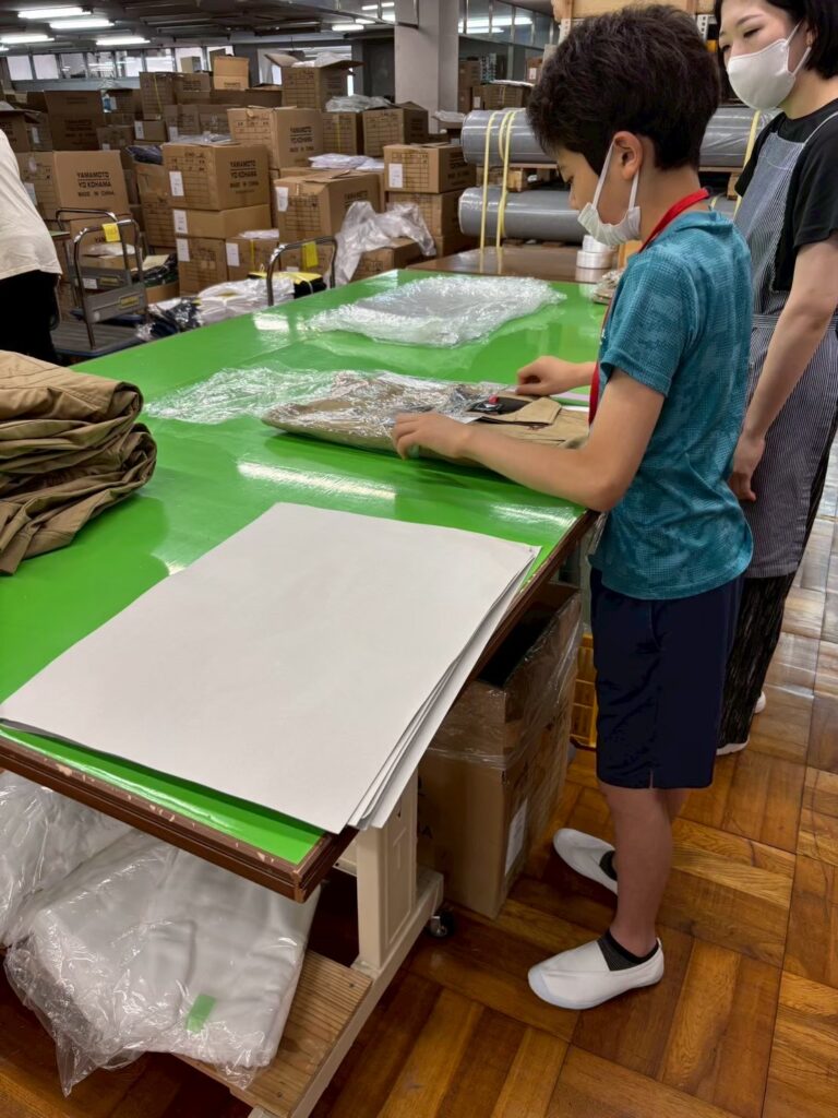 商品をたたんで梱包したり、ミシンでデニム生地を縫うなど、初めての作業ばかり。